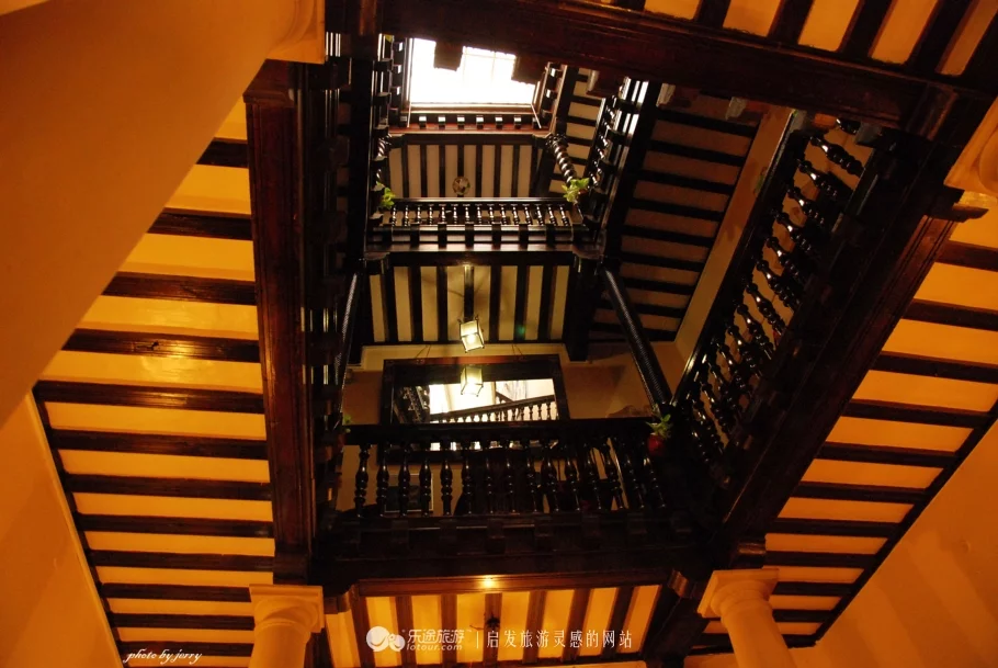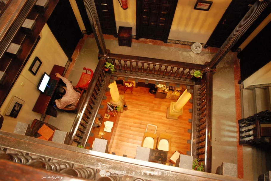 若不是酒店的木門(mén)向里敞開(kāi)著,也一定會(huì)讓人在門(mén)前躊躇一小陣子。但當(dāng)你進(jìn)到房子里面,站在屋子當(dāng)中時(shí),則完全是另一種感受。這是一棟五層的樓房建筑,房屋正中間有一個(gè)阿拉伯式的中庭直通頂層,光線從頂層窗戶(hù)透射下來(lái),整個(gè)房子從上到下異常明亮,二十來(lái)個(gè)房間分散在各樓層中庭的四周,各樓層上的中庭木質(zhì)圍欄四角,由后來(lái)被稱(chēng)為西班牙柱的麻花狀木柱作支撐,柱頭裝飾著花瓣,想必是科林斯式柱頭的變種了。酒店規(guī)模比原本想象中的要大許多。大家一邊等著辦理入住手續(xù),一邊喝著酒店為住客準(zhǔn)備的咖啡,一邊細(xì)細(xì)打量、欣賞著酒店的格局與布置,覺(jué)得應(yīng)該是找對(duì)了地方。
