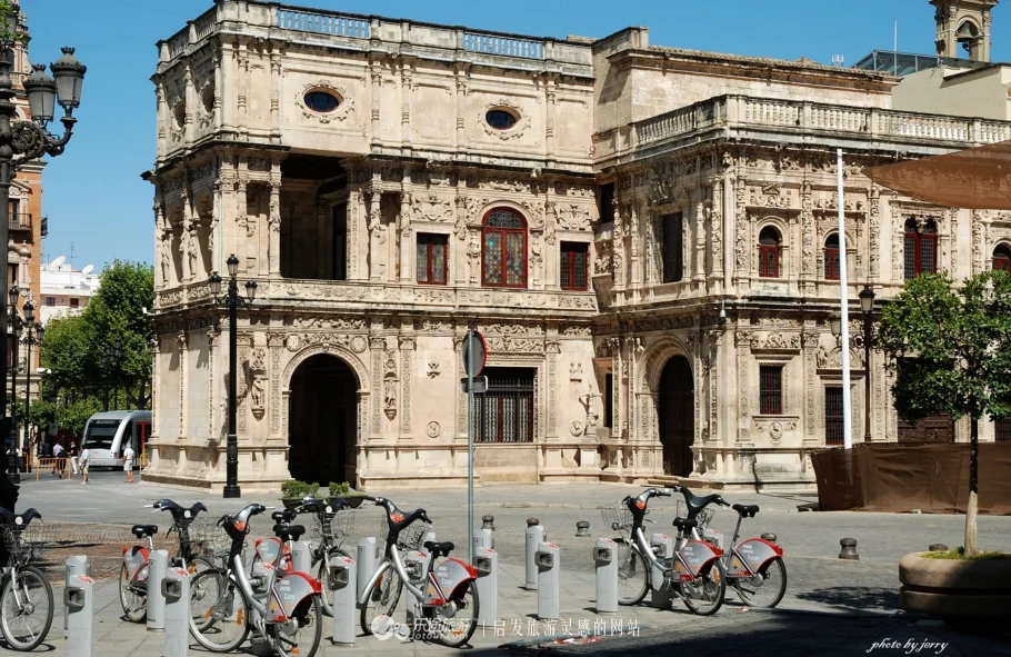 塞維利亞街頭老建筑與共享自行車(chē)