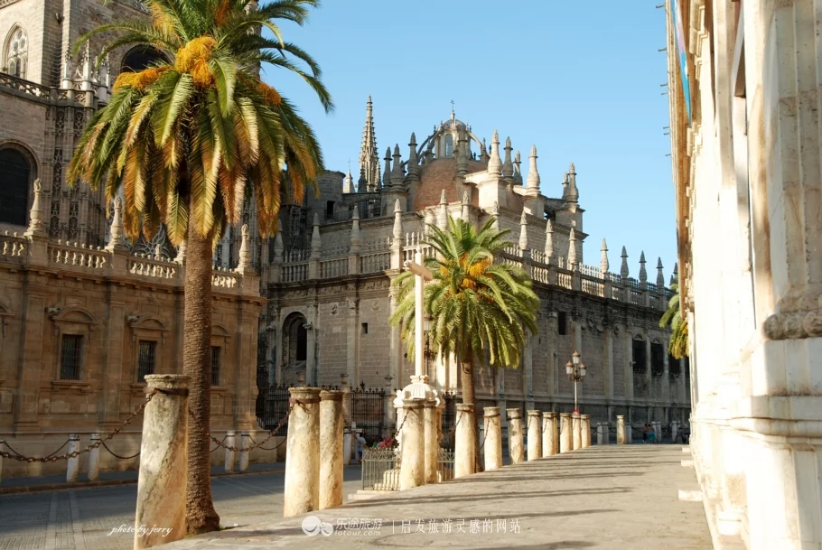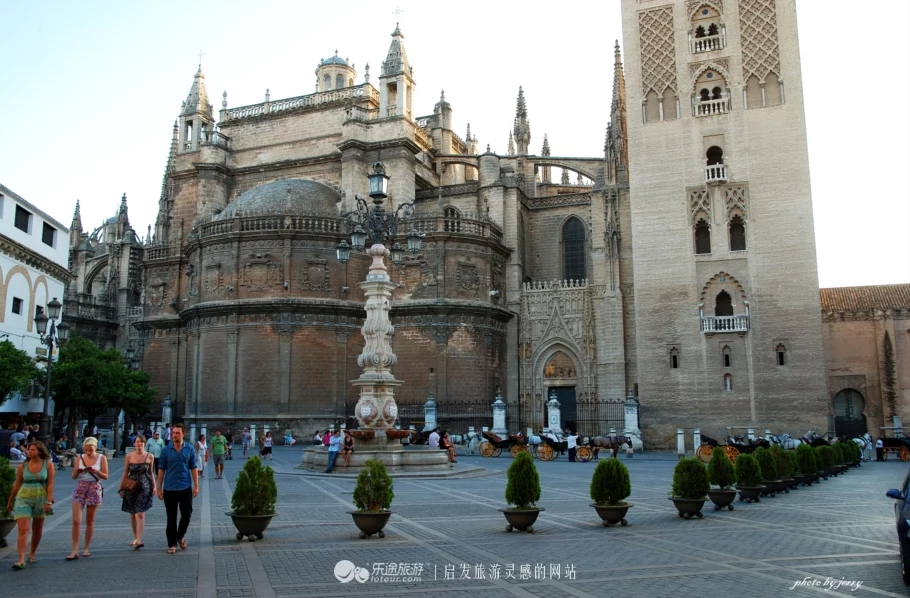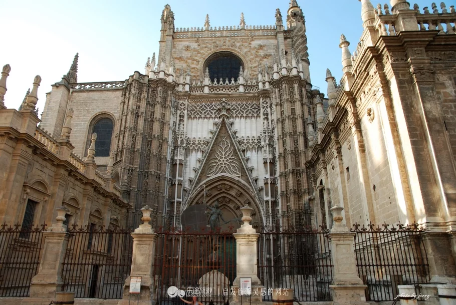 也許,基督教徒們等待這一天已經(jīng)太久太久,唯有通過(guò)一座龐大教堂的興建,才能最終釋?xiě)堰@種宗教光復(fù)的情結(jié)。與許多地方一樣,這座基督教堂也是在原伊斯蘭教清真寺基礎(chǔ)上,將原建筑拆除后重建的。盡管,最后徹底的拆除已經(jīng)是光復(fù)150多年之后的事情,但不知是因?yàn)楣こ屉y度太大還是攝于伊斯蘭文化的精美,其塔樓部分還是被保留了下來(lái)而成為了主教堂的一部分,并且,這座精美的伊斯蘭塔樓與基督主教堂一起組成了一幅完美的畫(huà)卷,而最終成為了塞維利亞城市的一張名片。