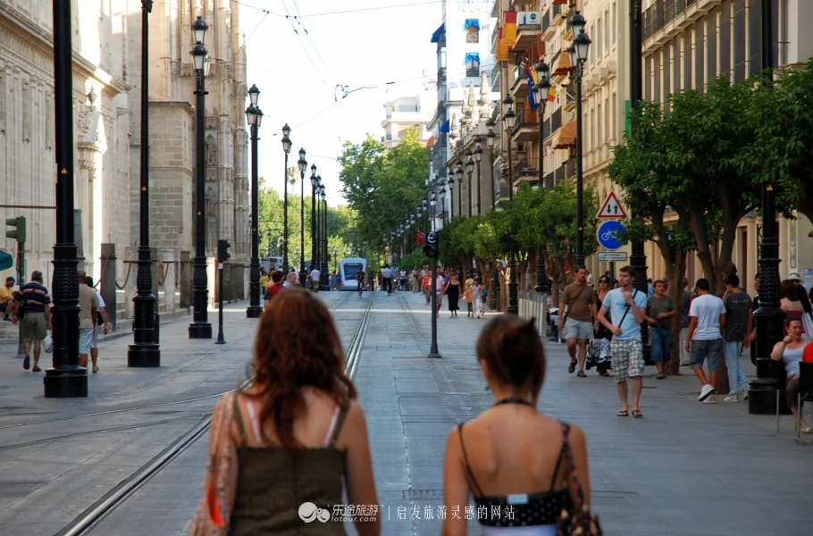 安達(dá)盧西亞的三座著名城市中,科爾多瓦是摩爾人在西班牙最早的都城,格拉納達(dá)則是摩爾人在西班牙最后的王國(guó),而塞維利亞則是安達(dá)盧西亞自治區(qū)最具活力、最商業(yè)化的一座城市。在我們驅(qū)車(chē)進(jìn)入塞維利亞城市時(shí),寬闊道路上疾駛的汽車(chē)以及人行道上熱鬧的人群,已經(jīng)讓人逐漸感受到了這座城市的活力。
