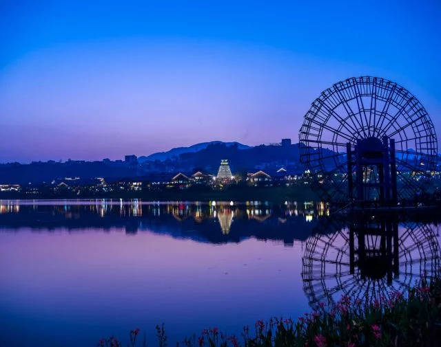 隨意走在精心雕琢的青石板上,感受著水鎮(zhèn)超凡脫俗的寧?kù)o,寧?kù)o中昏黃的路燈中透出絲絲溫馨,無(wú)論多少霧霾皆能一掃而光。燈光勾勒出山,水,城,亭,臺(tái),榭的輪廓,水鎮(zhèn)夜色一派燈火闌珊,十分驚艷,在暖黃色燈光的映染下恍若夢(mèng)幻般的仙境,璀璨的燈火與斑斕的星輝遙相輝映,憑欄遠(yuǎn)眺,頷首低眉,整個(gè)水鎮(zhèn)彌散著溫馨與祥和的氣氛。